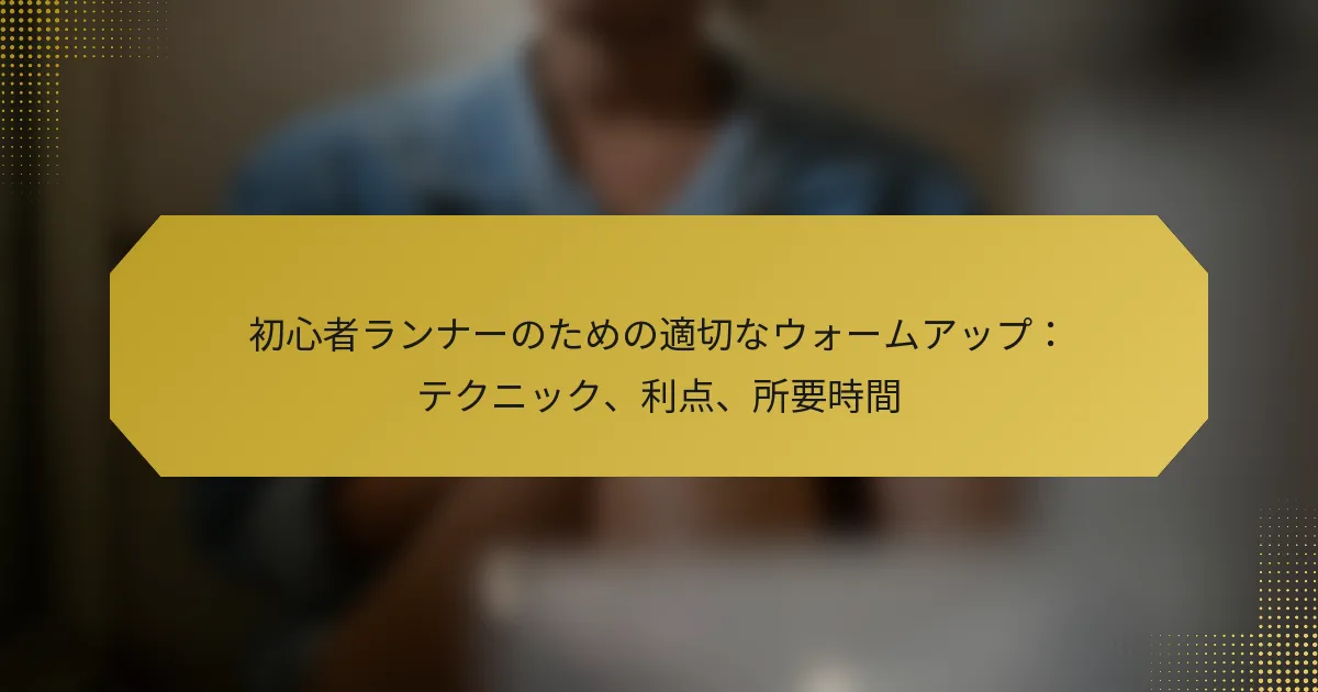 初心者ランナーにとって、適切なウォームアップは安全で効果的なランニング体験を確保するために重要です。ダイナミックストレッチ、軽いジョギング、モビリティドリルなどのテクニックを取り入れることで、柔軟性を高め、心拍数を上げることができ、怪我を防ぐのに役立ちます。パフォーマンスとメンタルフォーカスを最適化するために、5分から15分のウォームアップセッションを推奨します。
