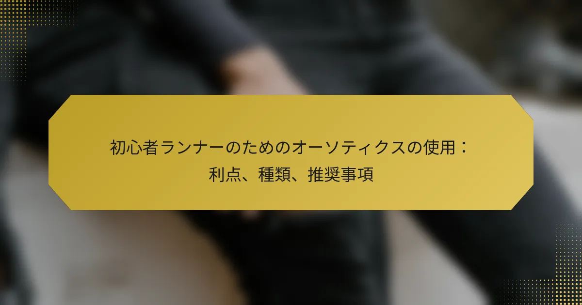 オーソティクスは、足をサポートし整列させるために設計された特別な靴のインサートであり、特に初心者ランナーにとって有益です。足のメカニクスに対処することで、オーソティクスは快適さを向上させ、パフォーマンスを改善し、怪我を予防するのに役立ちます。カスタムオプションまたは市販のオプションのいずれかを選択する際には、足の形状やランニング習慣に基づいて適切なオーソティクスを選ぶことが、成功するランニング体験にとって重要です。